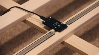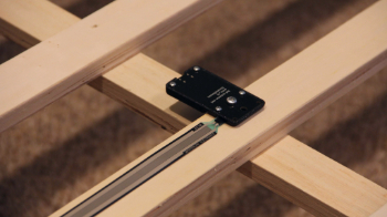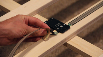 Insert the sensor strips, then peel the adhesive backing and affix the sensors to the bed slat. For a temporary setup, sensors may be gently taped in place around bed slat. Do not cover end of sensors with tape, as there is a required vent opening. For King beds, consider using the included extension wires to space the sensors futher apart. Zip ties can be used to hold everything neatly in place.