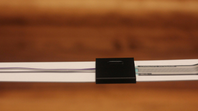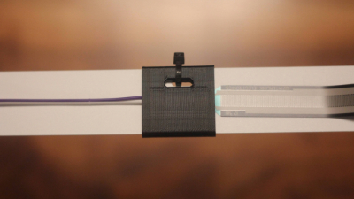Gently install the sensor extension clips, inserting the thin side under the slat.